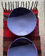 Set of two stackable dishes, hand-formed in white stoneware. Dipped in matte cobalt blue and glossy dark blue glazes.